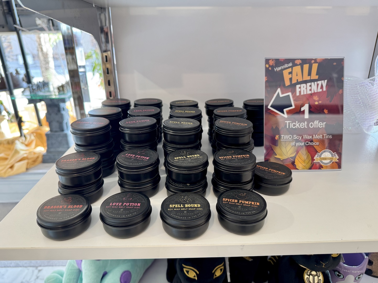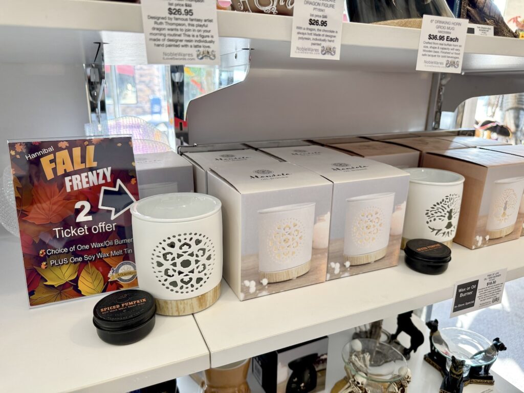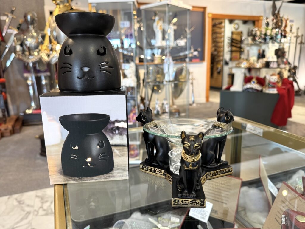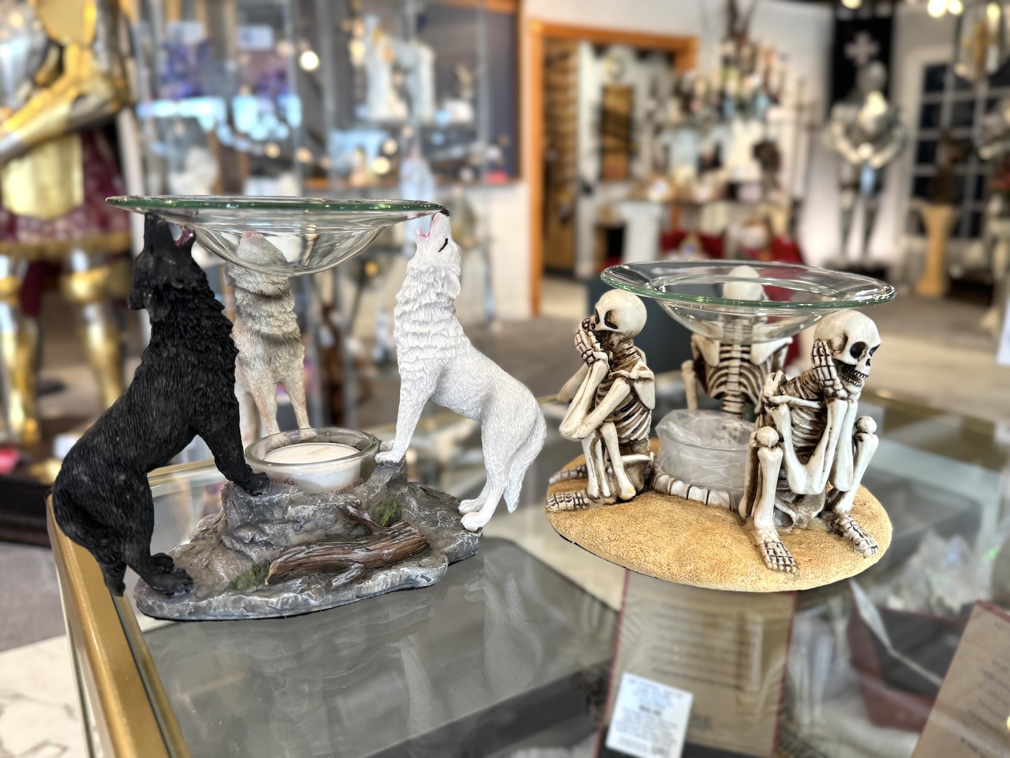 If you are in the scented mood and ran out of tickets, we also have some additional unique thematic Wax / Oil Burners like the Howling Wolves, Egyptian Bastet, and Desert Island Skellingtons or our simple black kitty; new to the store brought in specifically for this event! Our glass burners are also removable for easy cleaning and tea tree light replacement.